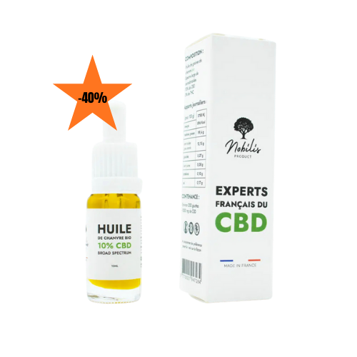 Parmi les huiles de CBD les plus appréciées du marché, on retrouve les huiles Nobilis, à 10% de concentration. Broad spectrum (à spectre large des cannabinoïdes), ces dernières contiennent l’ensemble du spectre, sauf le THC (tétrahydrocannabinol, la molécule psychotrope de la plante de chanvre).